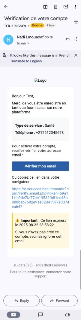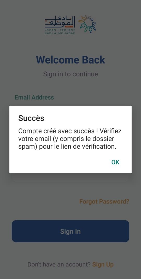 المستخدم يضغط على زر “تحقق من بريدي الإلكتروني” باش يتم تفعيل الحساب. عندو حتى لتاريخ الانتهاء باش يكمل هاد الخطوة.