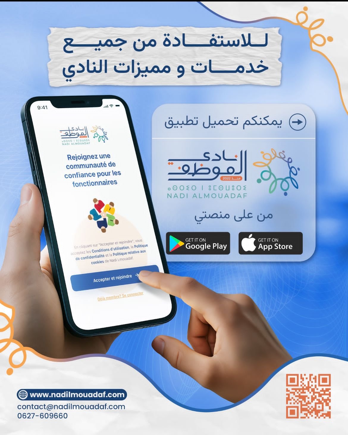 ويوجه نادي الموظف دعوته للانخراط والانضمام إلى شبكته: فباب التسجيل مفتوح لكل موظف للاستفادة من الامتيازات الحصرية عبر البوابة الرقمية، كما يرحّب بمقدمي الخدمات الراغبين في الارتقاء بأنشطتهم ضمن شبكة وطنية متنامية.